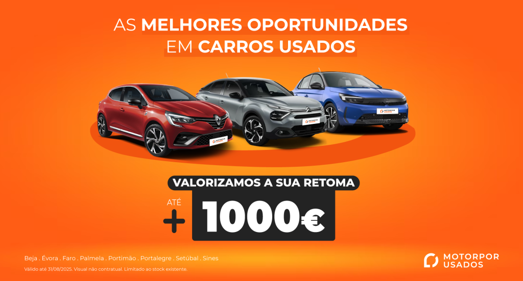 Até 31 de agosto, na MOTORPOR USADOS encontras mais de 500 carros disponíveis para entrega imediata – desde ágeis citadinos ideais para o dia a dia até robustos familiares que transformam qualquer viagem em conforto.